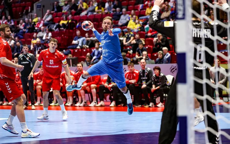 crédit photo : Kolektiff ETOPEN pour Handday médias A défaut d’une victoire, la Suisse se satisfait du match nul décroché contre l’Islande (38-38) au vue des réactions des joueurs et du sélectionneur de la Nati, Andy Schmid. Les Helvètes mènent tout simplement la danse (4-4, 7-7, 12-10, 19-17, 25-23, 30-28, 37-35) et le Nantais Noam