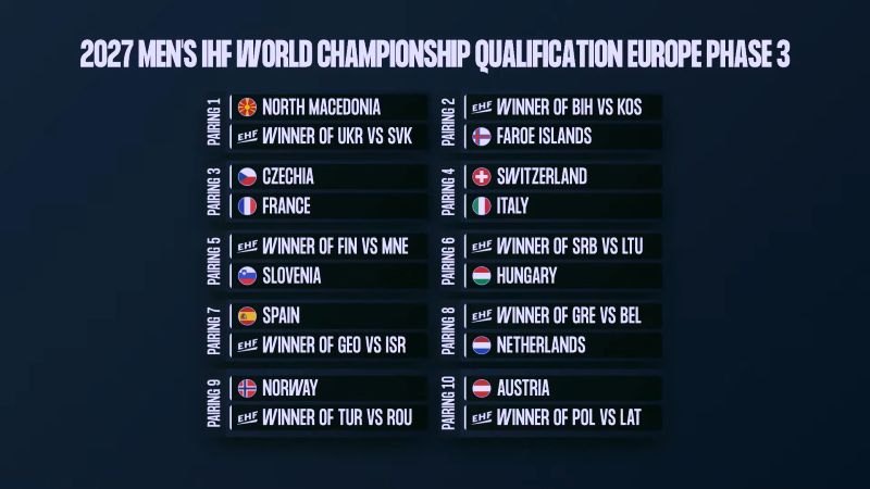 En marge de la grande finale de l’Euro 2026, le tirage au sort des barrages du prochain mondial masculin en Allemagne vient d’avoir lieu. L’équipe de France était concernée et ce sera une double confrontation face à la République Tchèque au programme des Bleus (aller 13/14 mai à l’extérieur, retour 16/17 mai prochain). Cela aurait pu être pire, mais gardons une certaine retenue car après cet Euro, il va falloir reconstruire et surtout chercher la qualification pour l’Allemagne en 2027. Le Monténégro de Didier Dinart va en découdre avec la Finlande et en cas de qualification jouer la Slovénie ! Sinon, un sympathique Suisse vs Italie est également à venir.